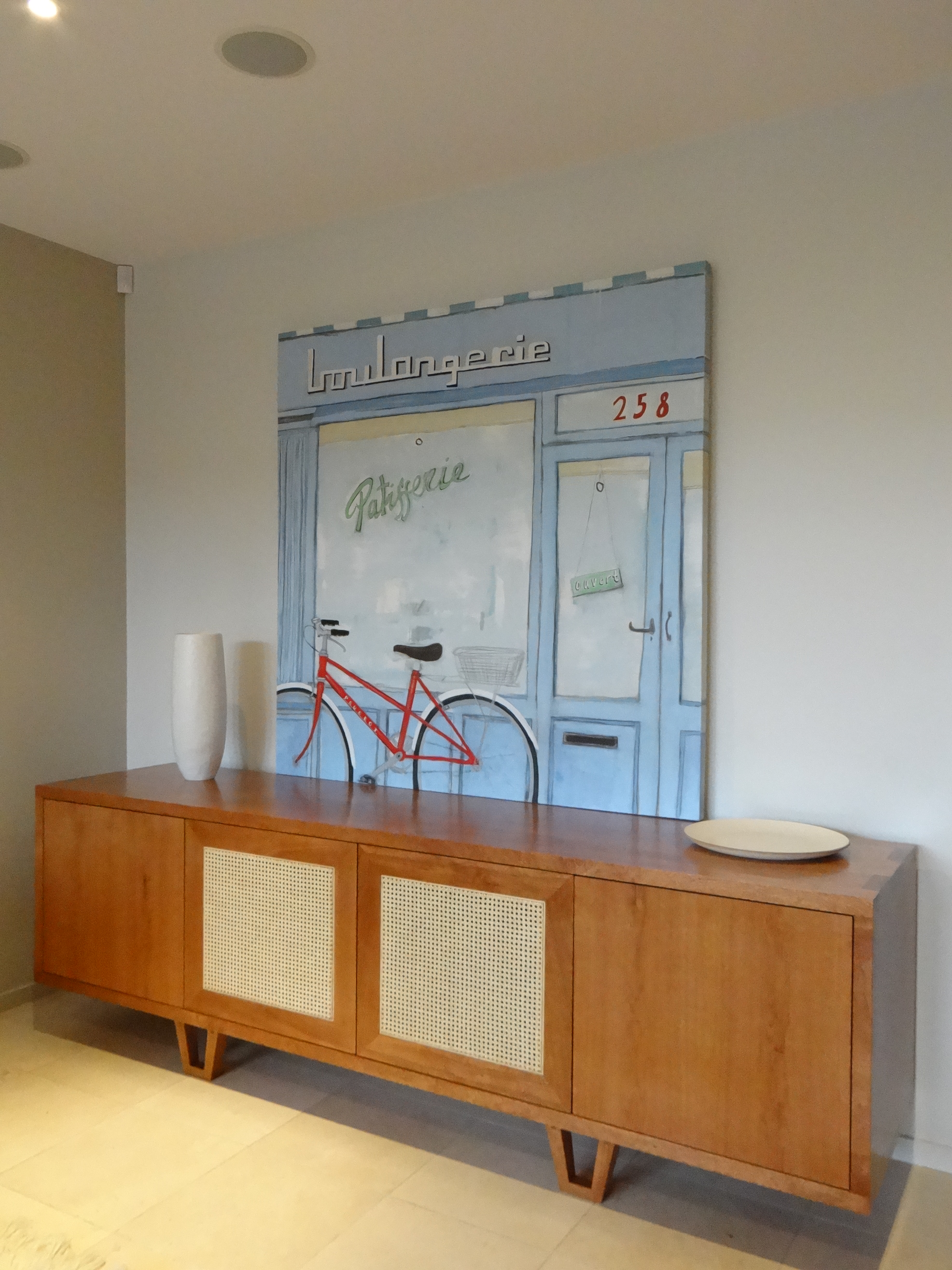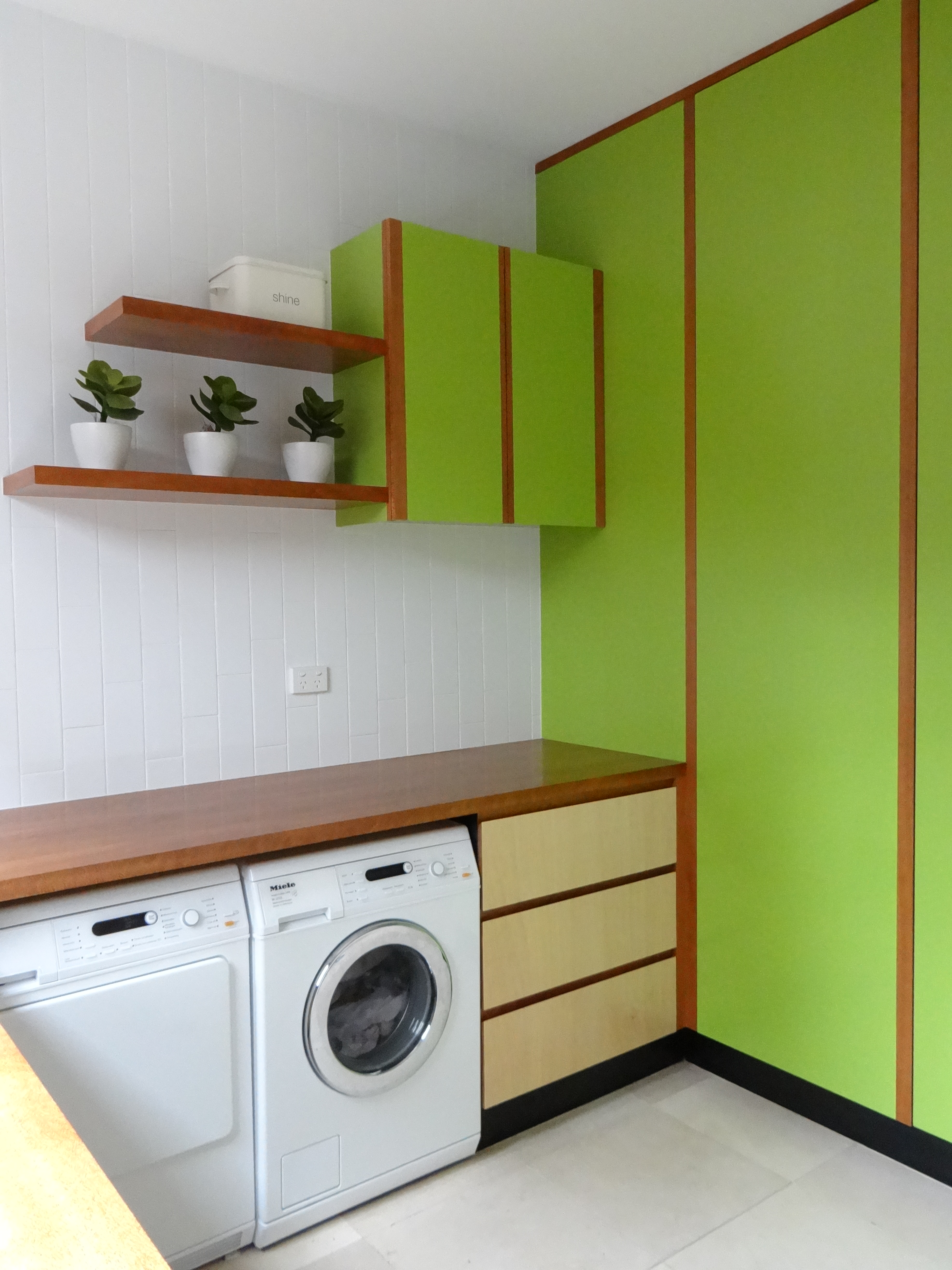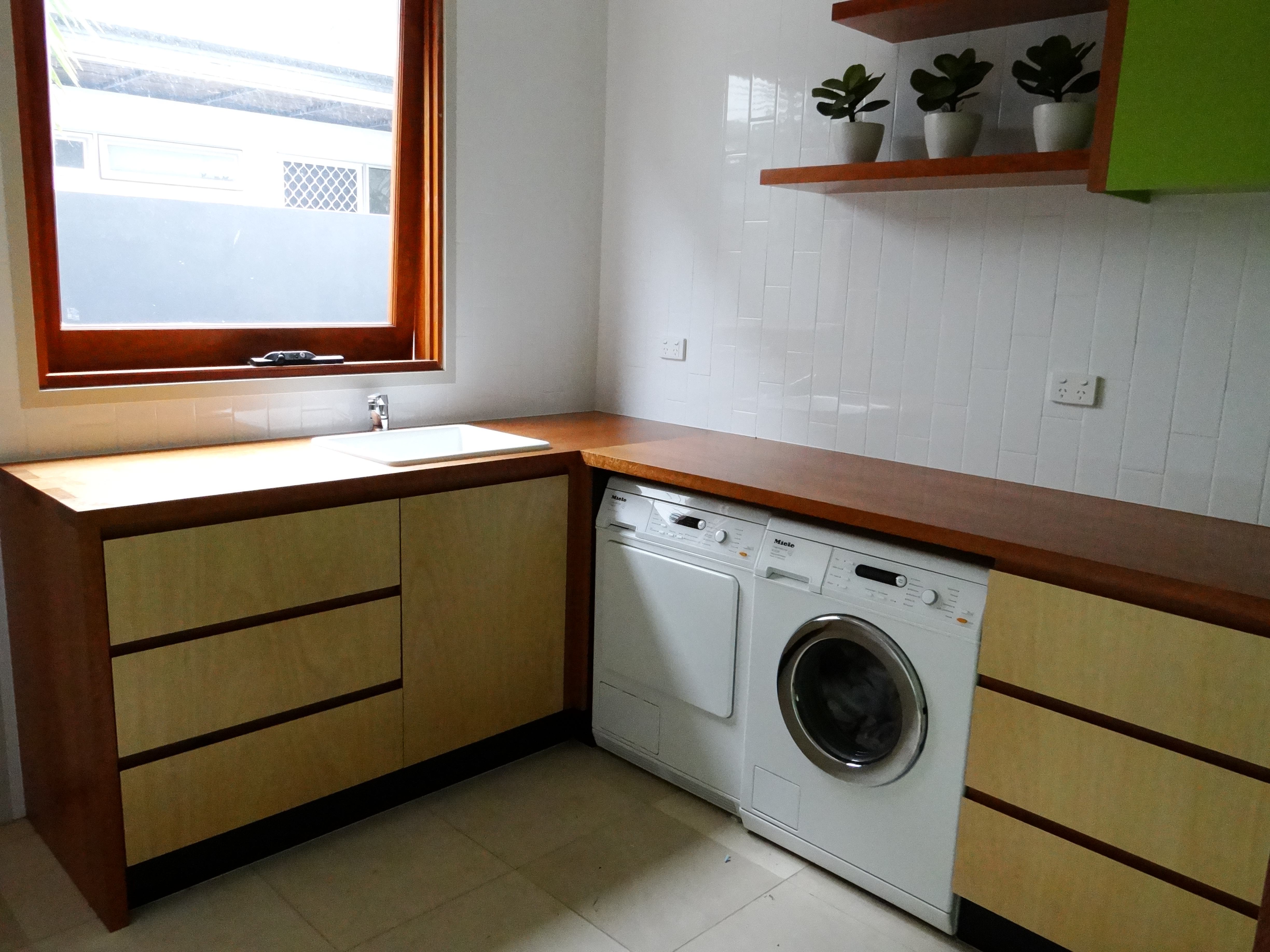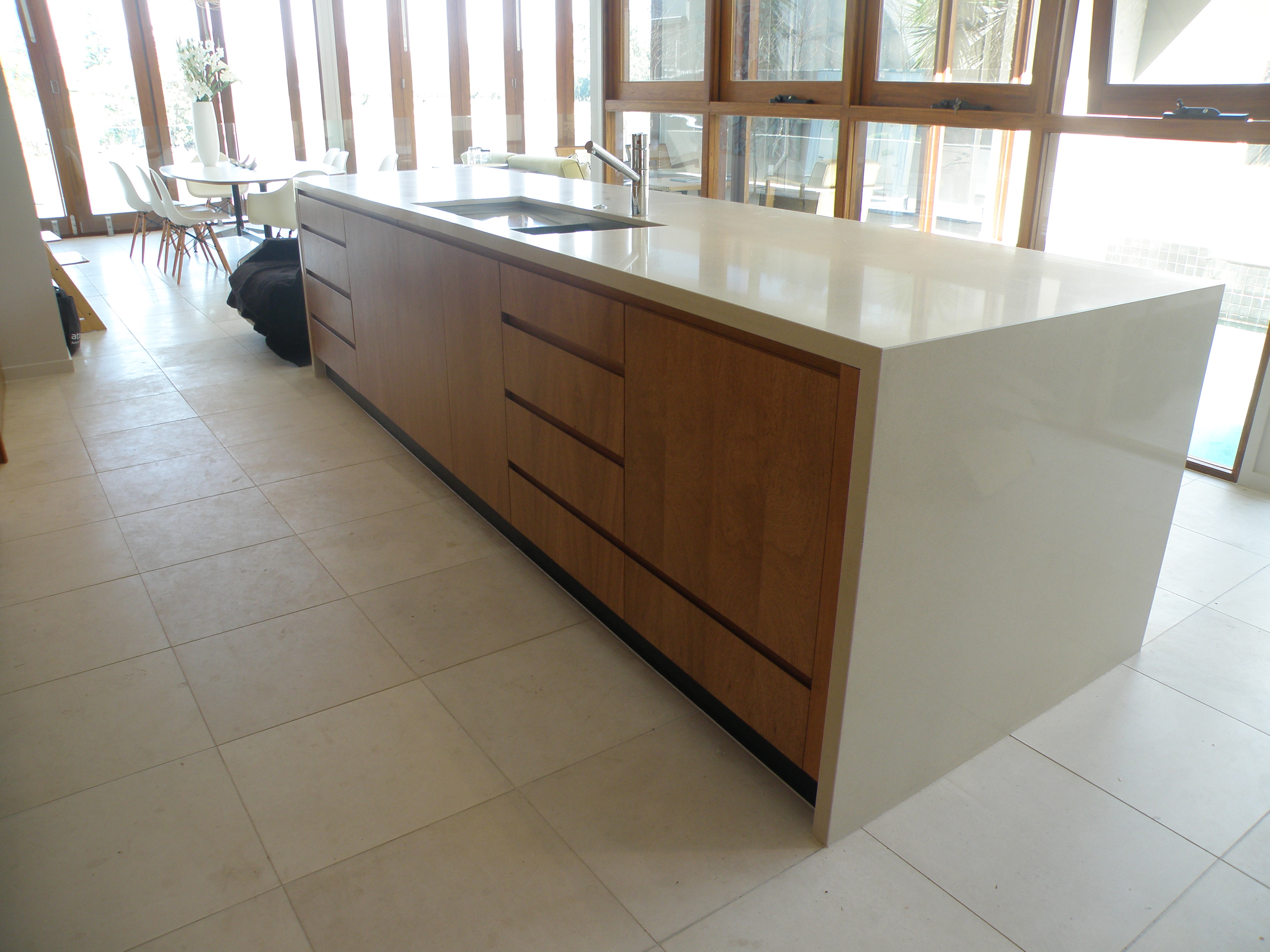 This project included production of Laminated Timber Bench Tops, high quality veneered doors (using veneer manufactured in house), veneered Wall Paneling incorporating hidden timber doors, and three Entertainment Units.